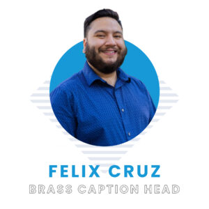 As a performer, Cruz marched with the 21-time World Champion Blue Devils from 2012-2014, where he was a soloist and named Performer of the Year in the highest-scoring show of all time, “Felliniesque.” During his time with the Blue Devils, Felix honed his approach and philosophy under the guidance of John Meehan and Todd Ryan. Cruz also holds a decorated Individual & Ensemble track record, having won 5 gold medals and 1 silver during his time as a marching member.