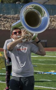 Timothy Fannin, a tuba player, travels to the weekly rehearsals from American Fork, Utah. He will cover over 5,210 miles by car, bus and plane to get to and from Denver before heading out to Bahrain.