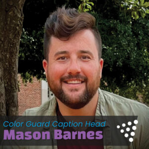 Mason Barnes, originally from Jackson, Mississippi, now calls Houston, Texas home. His extensive career in color guard includes roles as the color guard director at William B Travis HS and collaborations with numerous local and national high schools and winter guards. Mason’s colorful journey involves teaching and performing with renowned groups like Paramount Winter Guard, Edge Independent, Ola HS, Music City Drum and Bugle Corps, the Troopers, and Madison Scouts. In his free time, Mason enjoys the company of friends and his faithful pup, Bristol. He’s thrilled to return to the Blue Knights for his fourth summer, further enriching the corps with his experience and talent.