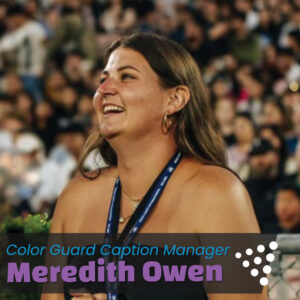 Beyond the world of color guard, Meredith enjoys travel, quality time with friends and family, and the companionship of her dog, Merle. She holds a Bachelor of Liberal Science from the University of Southern Mississippi and is currently pursuing a Master’s of Science in Higher Education from Purdue Global University. She resides in Hattiesburg, Mississippi, with her close friend, Chad Hanes, and serves as the Colorguard Director at Jones College.