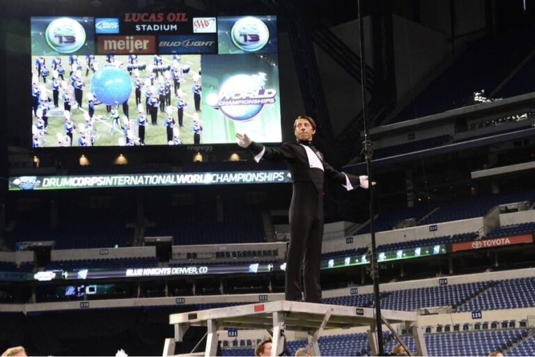 The long answer is that Angelo Sapienza, a Blue Knights drum major at the time (and 2020 Blue Knights Hall of Famer), came and taught as staff during my senior year of high school. He recruited my close friend and 2025 Blue Knights Hall of Fame inductee Alex Factor to march contra in the 2011 season of Blue Knights. After watching Angelo and Alex perform the 2011 show, I knew I wanted to be involved however I could and after a few phone calls and chats, I was given the opportunity to run the metronome and learn all about drum corps in 2012; I couldn’t be more grateful for that opportunity.