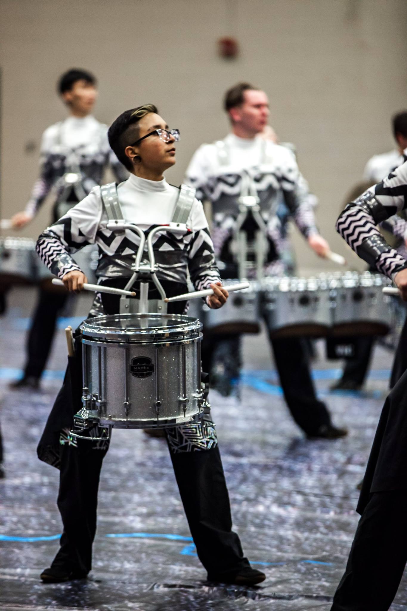 DENVER, CO – We are pleased to present the Blue Knights Percussion Ensemble’s “Distorted” uniform for 2018 as they celebrate their 25th Anniversary competing in Percussion Independent World Class in Winter Guard International and the Rocky Mountain  Percussion Association.